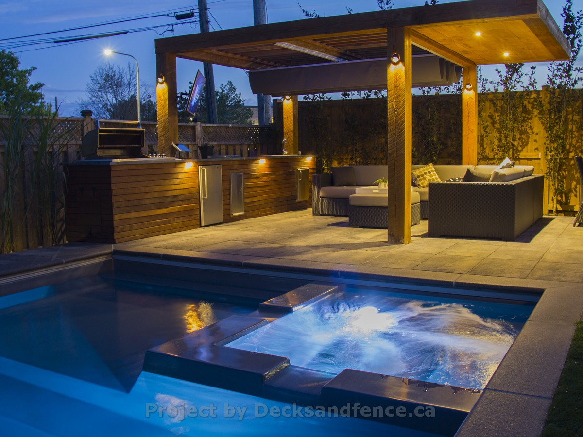 Outdoor kitchen with pergola pool and interlocking - Toronto decks ...